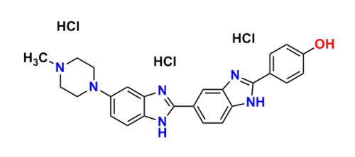 Hoechst 33258細胞核染料是一系列熒光染料,用于在熒光顯微鏡中標記DNA。它們也常用于可視化細胞核和線粒體的染色??蒲兄型ǔJ褂玫膬煞N分別為:Hoechst 33258和Hoechst 33342。 兩種染料都被約350nm的紫外光激發(fā),并且都發(fā)射藍/青色熒光,發(fā)射最大值為461nm。 Hoechst染色劑可以與活細胞或固定細胞一起使用,并且通常用作另一種核酸染色劑DAPI的替代物。 它們之間的關鍵區(qū)別在于Hoechst 33342的額外乙基使其更具親脂性,因此更容易穿過完整的細胞膜。在某些應用中,Hoechst 33258的滲透性明顯低于Hoeschst 33342。這些染料也可用于通過繪制標準的發(fā)射 - 含量曲線來檢測樣品的DNA的含量。