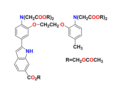 Indo-1是一種細胞生物學(xué)常用的鈣離子熒光探針,Indo-1能特異性地結(jié)合Ca2+,同時可發(fā)出熒光,Indo-1是極性大的酸性化合物,無法進入細胞內(nèi),使其成為Indo-1/AM,該變化既增加了酯溶性又消除了負電荷,極大的提高了細胞滲透性。
